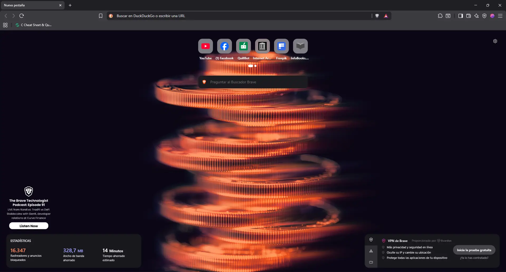 Brave Browser is the main on this list. Why is it the best? Because includes ad-blocking, different search engines and Brave VPN (for trial). As you can see on the new tab, I have a lot of blocked ads from YouTube, Pinterest and Twitter/X. They're not necessary and only disturbing my experience. Brave offers you rewards on BAT for watching ads from creators.